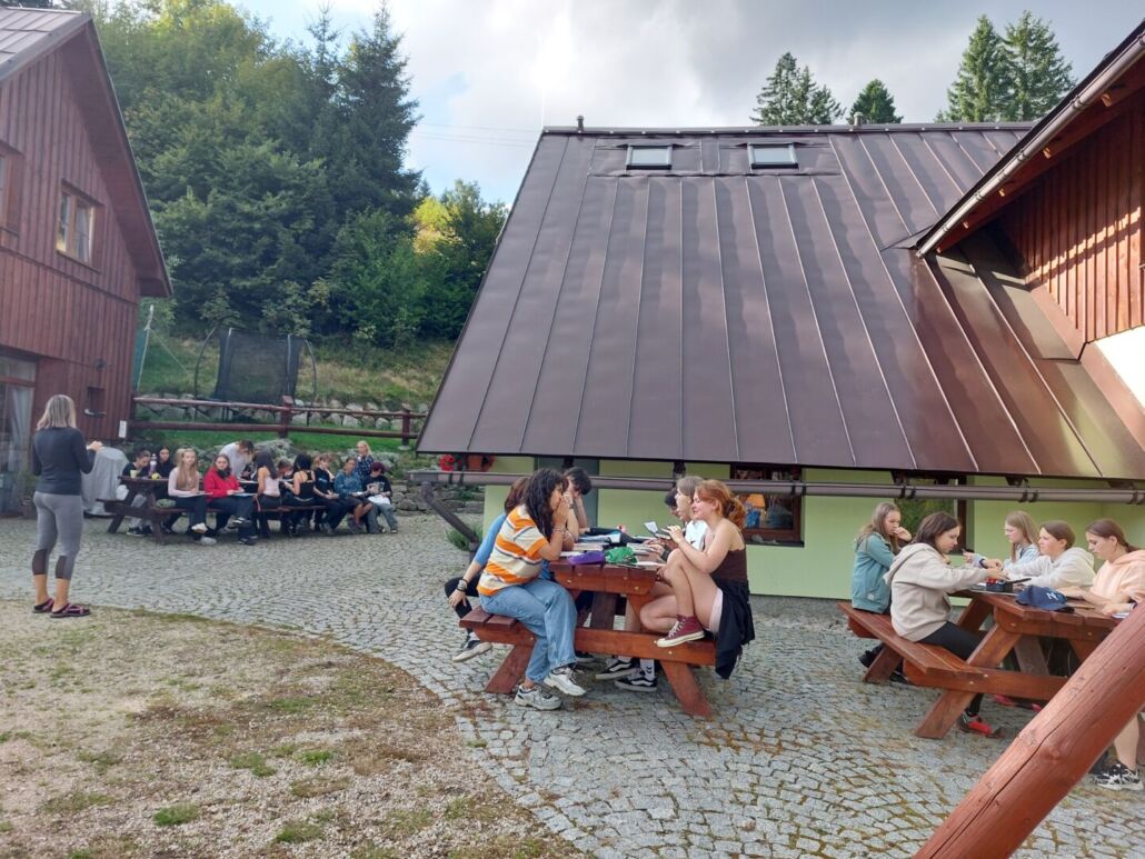 Hned počátkem druhého týdne školního roku jsme vyjeli s prváky na 3-denní adaptační pobyt do Janova. Počasí nádherné, zadováděli jsme v lanovém parku, jídlo skvělé, táborák i přes déšť zapálen, … a zvládli jsme i skupinové hry a pěší túry 🙂